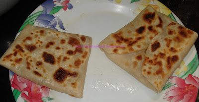 Keep the chopped tikkas in center(spread evenly to square shape)